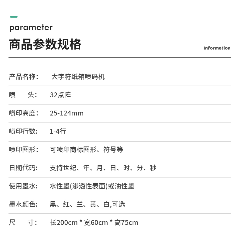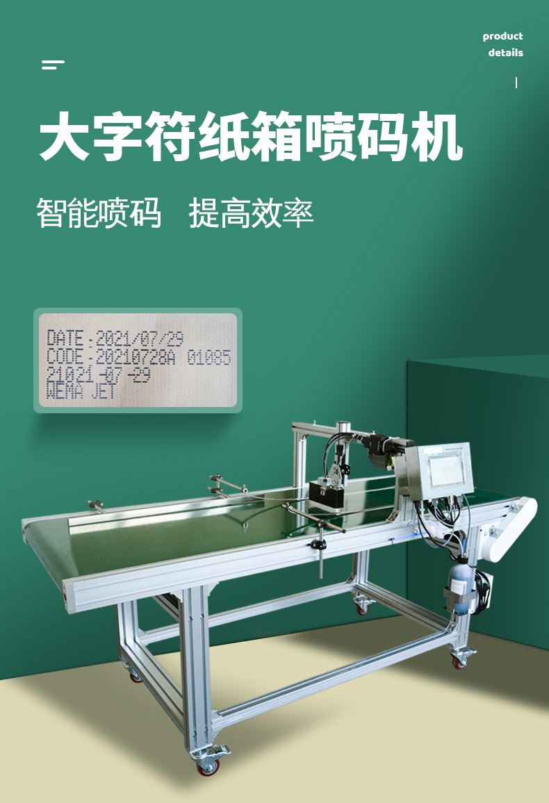 32點(diǎn)陣大字符噴碼機(jī),適用于紙箱、板材、建材、化工牛皮紙包裝等行業(yè)。