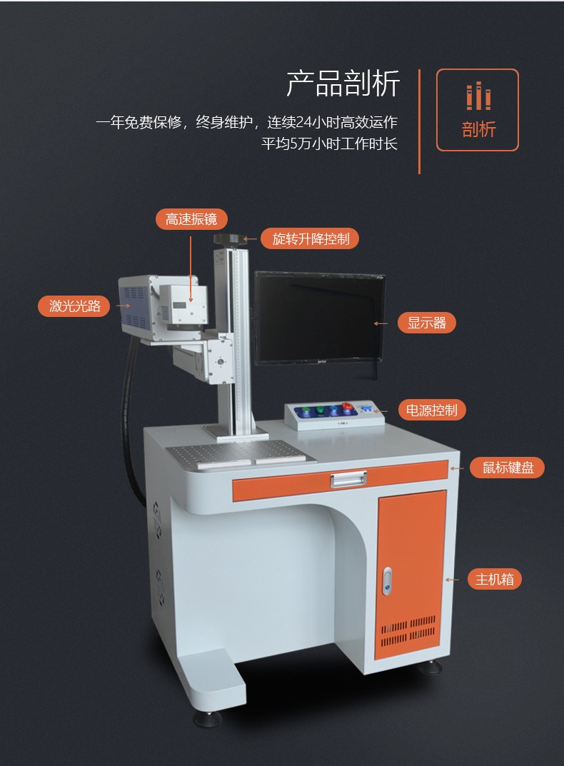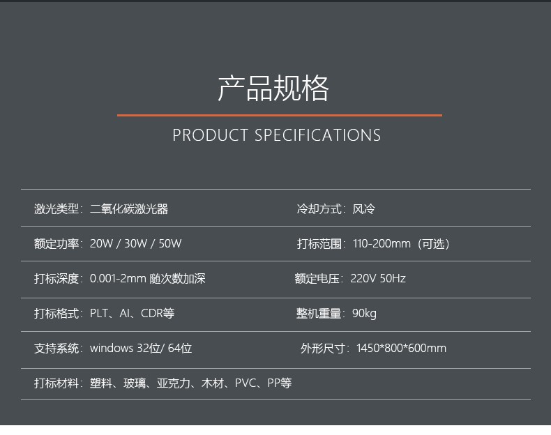 可雕刻非金屬材料及產(chǎn)品表面的打標,如有機玻璃、陶瓷、塑料、合成材料、木材、橡膠皮革、紙品;